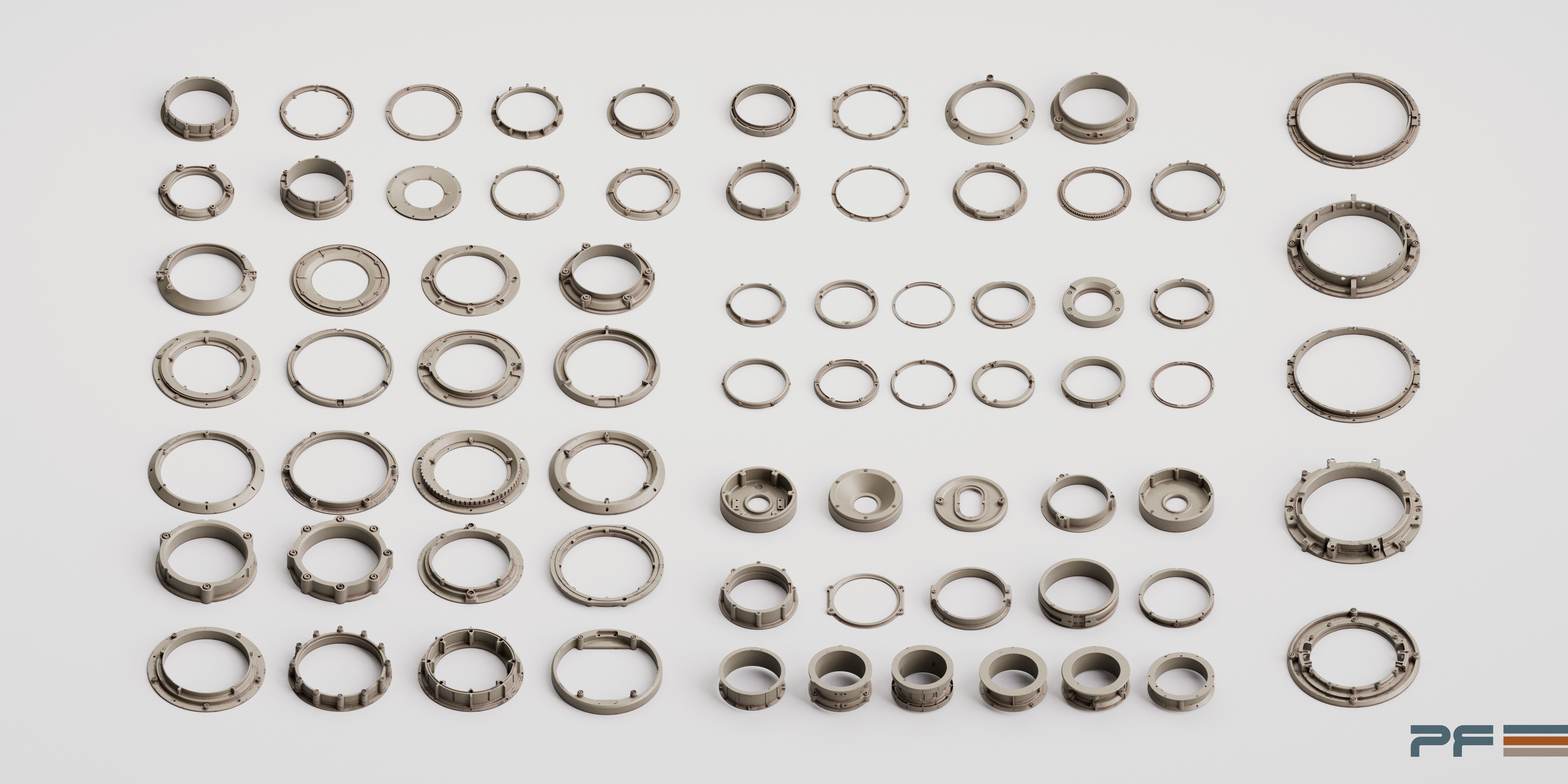 Select examples of the wireframes and topology. Our asses were made with a mix of Blender + Plasticity and each asset was individually cleaned up and optimised to look good ,be consistent and lightweight.