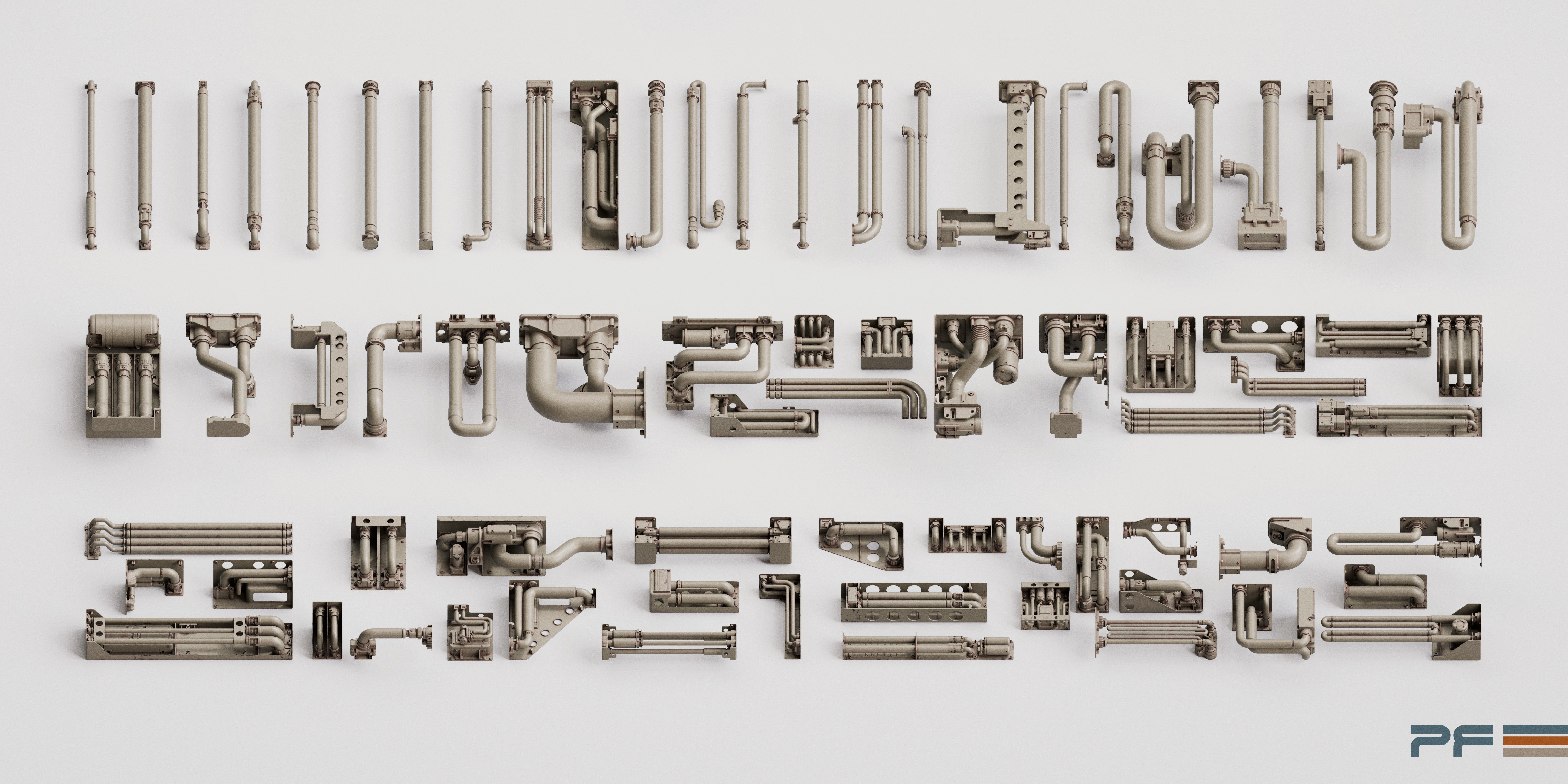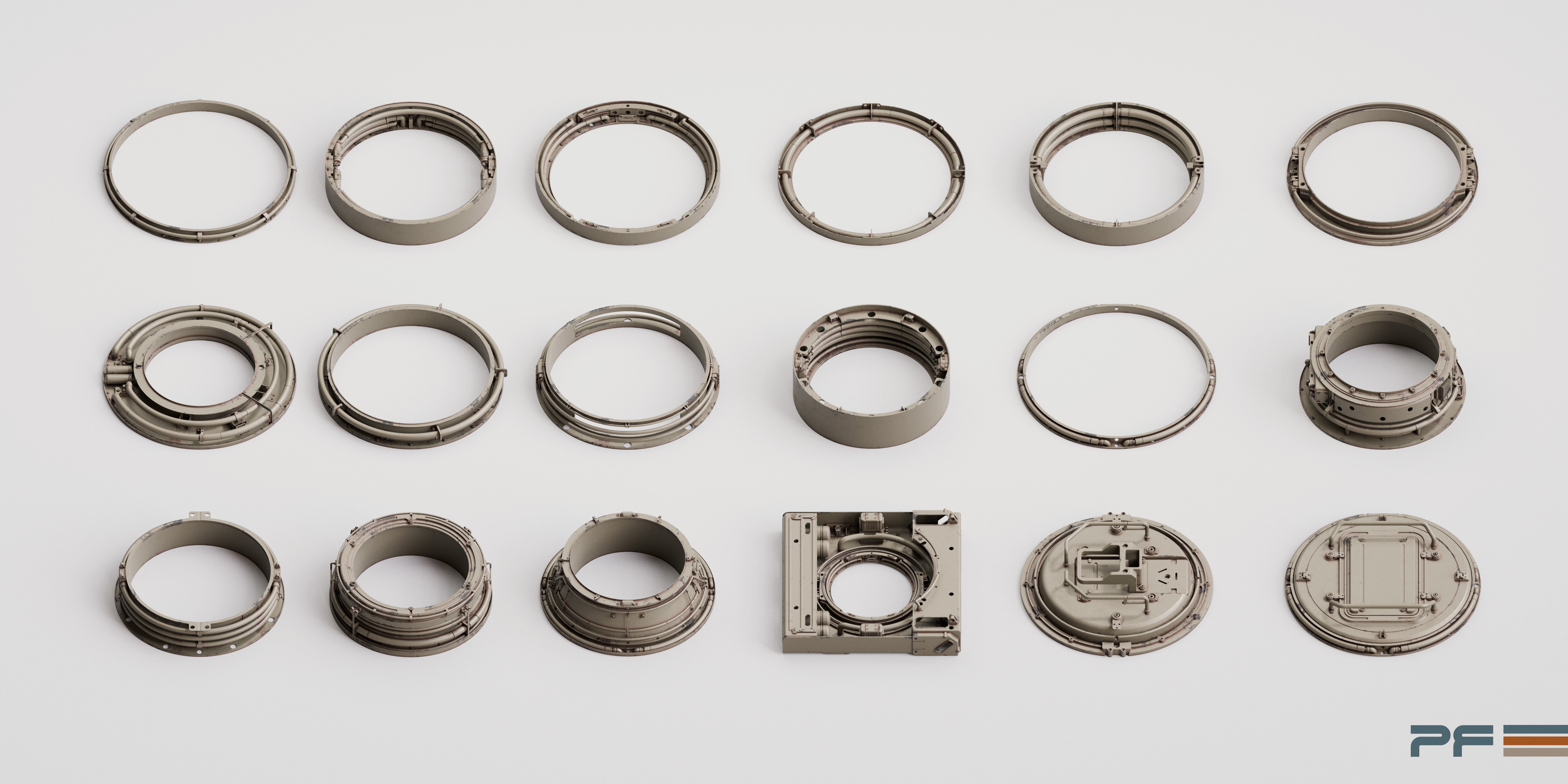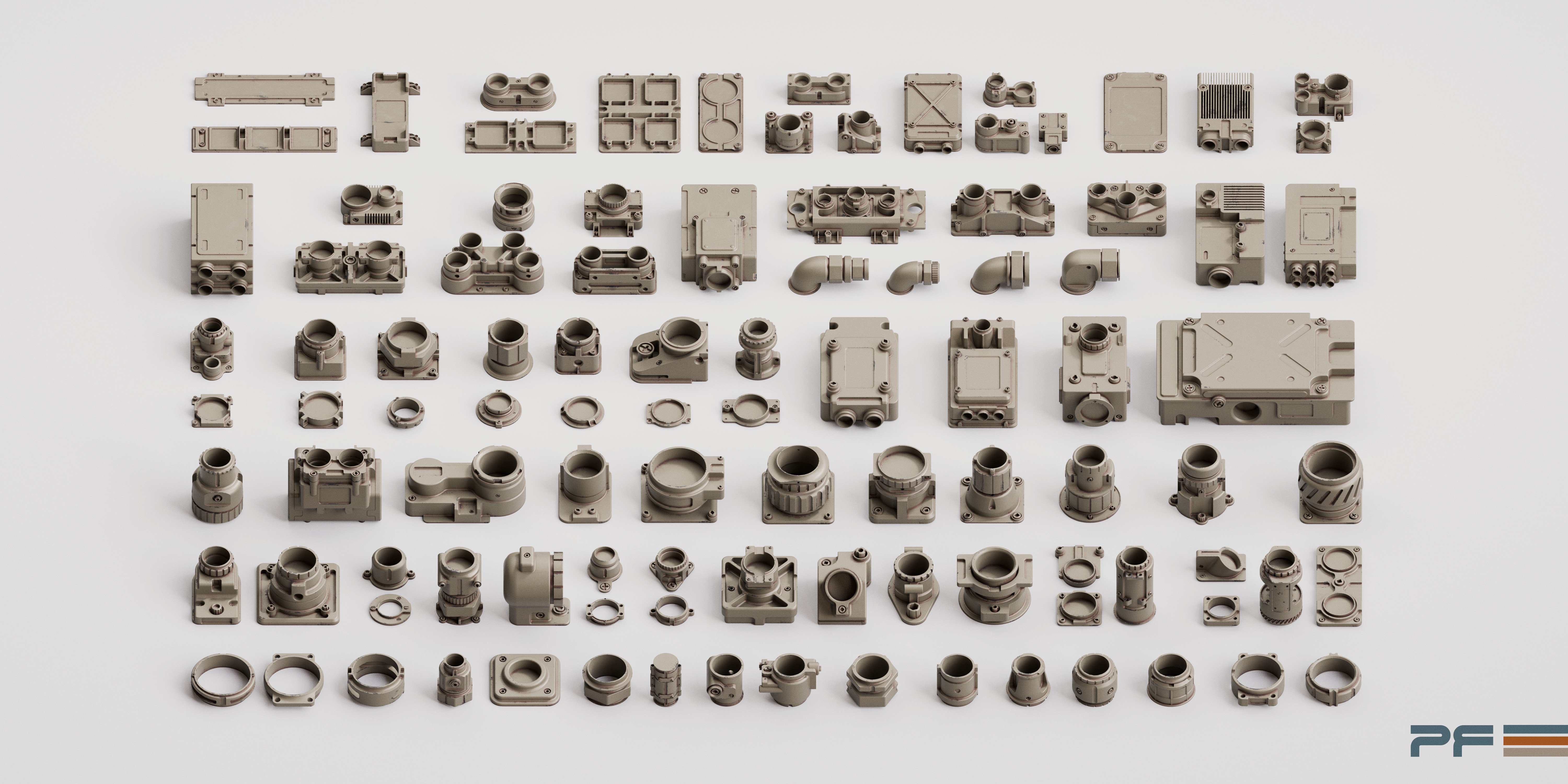 A comprehensive collection of various hard surface parts to help you detail your work.